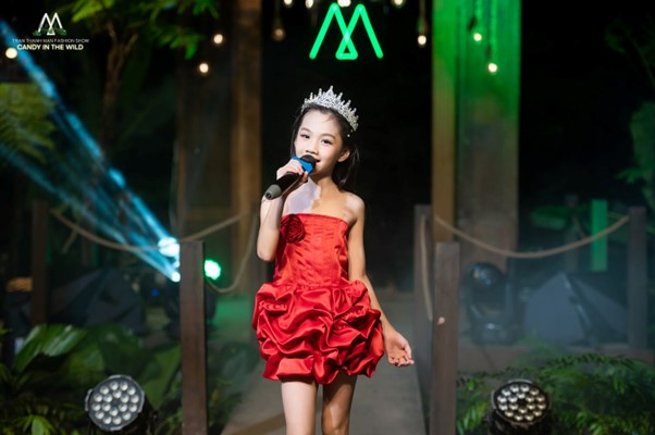 Trong không gian xanh mát của Củi Coffee – nơi thiên nhiên và thời trang hòa quyện trong ý tưởng “kẹo ngọt giữa rừng hoang” của NTK Trần Thanh Mẫn, Hoàng Bảo Nhi không chỉ sải bước đầu tiên trên sàn runway, mà còn gây bất ngờ khi thể hiện một tiết mục ca nhạc solo đầy cảm xúc trước hàng trăm khán giả. Sự kết hợp giữa catwalk và biểu diễn nghệ thuật một cách tự nhiên, duyên dáng đã cho thấy hình ảnh một nghệ sĩ nhí đa năng đang dần hình thành rõ nét.