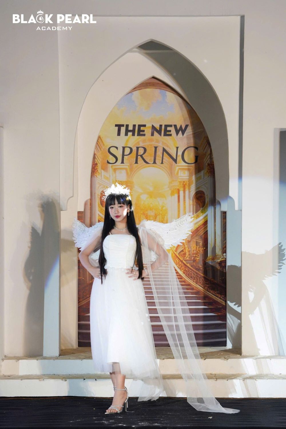 Và đặc biệt là Bst “Spring of Angel” của NTK Yến Hana, Thiên thần mùa xuân Khánh An đã lột xác thành nàng thơ rực rở, toả sáng với những bước catwalk tự tin, thần thái ánh mắt biết nói và gương mặt thanh tú