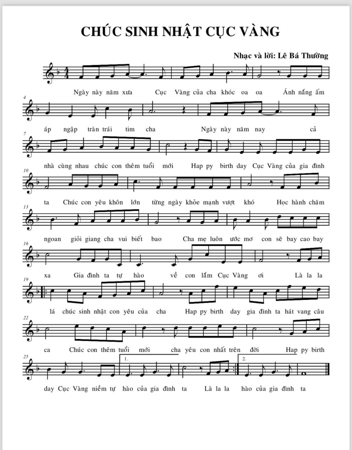 Gần đây nhất, nhạc sĩ Lê Bá Thường đã giới thiệu ca khúc “Chúc Sinh Nhật Cục Vàng”, một món quà đặc biệt dành tặng sinh nhật con gái Lê Bá Minh Châu tròn 16 tuổi và con trai Lê Bá Minh Quân 14 tuổi.